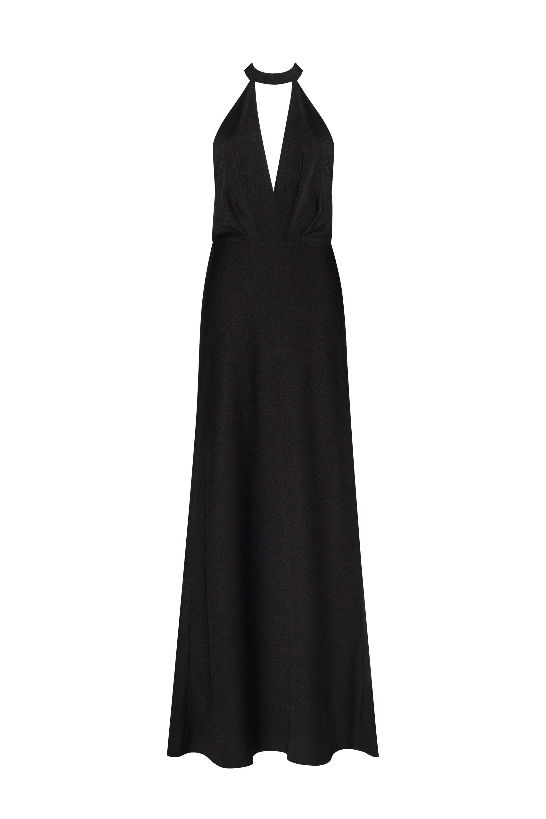 Чорна максісукня з зав'язкою на шиї і глибоким декольте